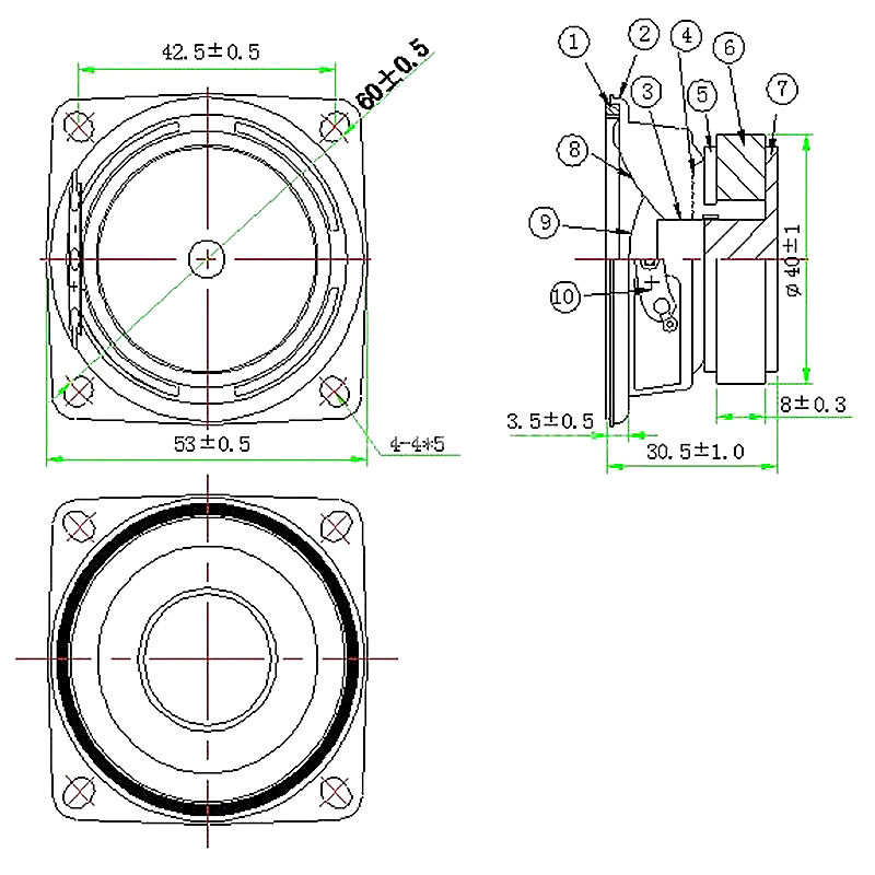 Loudspeaker 53mm YD53-08-4F40P-R Min Full Range Woofer Speaker Drivers-Changzhou Esuntech Co Ltd